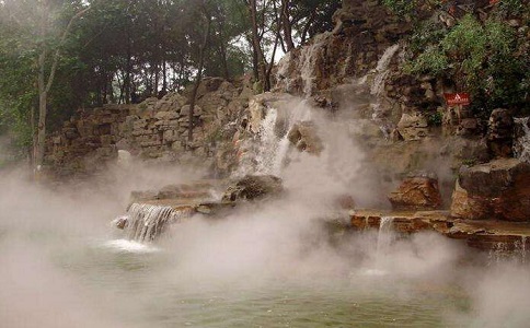 戶外空間環境降溫系統,可以局部地控制大環境的溫度。人造霧降溫系統散發到空氣中的水微粒,在汽化的過程中要吸收大量周圍環境中的熱量,蒸發冷卻從而降低周圍環境溫度的原理
