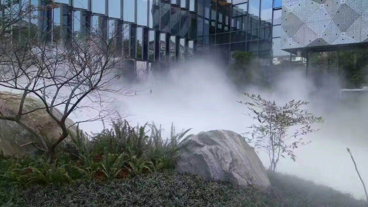 應用于園林景觀效果,以改善空氣質量,美化環境為依托,以景觀、保濕、防塵、降溫、造景為目的,在自然園林、環境景觀方面應用廣泛,如景區、廣場、公園、綠化工程、舞臺、連廊、休息亭、室內外餐廳等各領域。當微風拂過,霧形上下騰涌,霧濃似云海般飄渺,云起云聚,霧淡如輕紗撫面,溫和柔美。人們不僅可以在遠處觀賞,體會那若穩若現的神秘之感,更可置身于的茫茫霧海中,呼吸其濕潤新鮮的空氣,神奇之處令人意趣無窮。